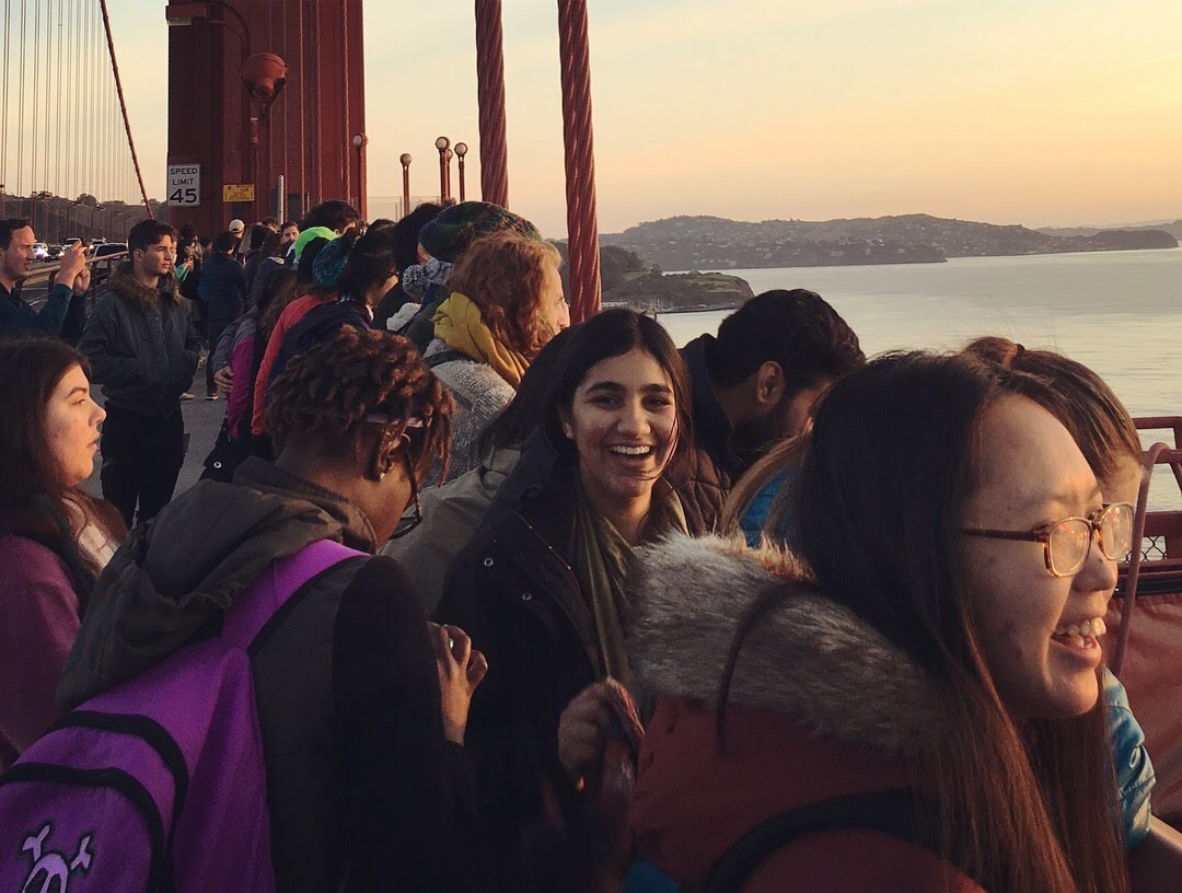 Students wake up at sunrise to walk across the Golden Gate Bridge in San Francisco.